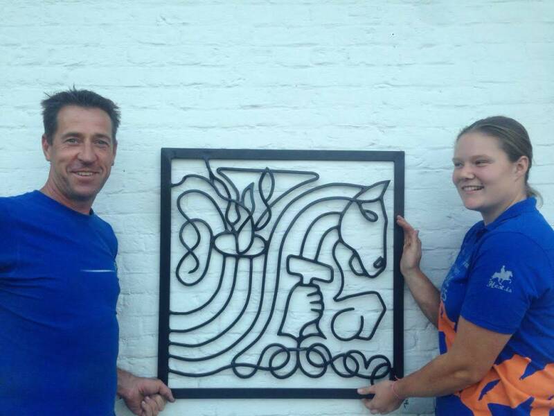 Op dit kunstwerk ben ik ontzettend trots! Als dank voor alles wat hij voor mij betekent en gedaan heeft in de 3 jaar dat hij mijn stagebieder is geweest tijdens mijn opleiding tot hoefsmid. Het logo van zijn smederij van ijzer in 3D.